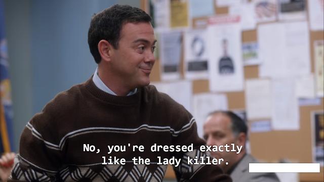 Esse é o post em que nós usamos séries para melhorar seu inglês, a série de hoje é BROOKLIN NINE-NINE, sua missão é traduzir as legendas de inglês para português. Confira as imagens.