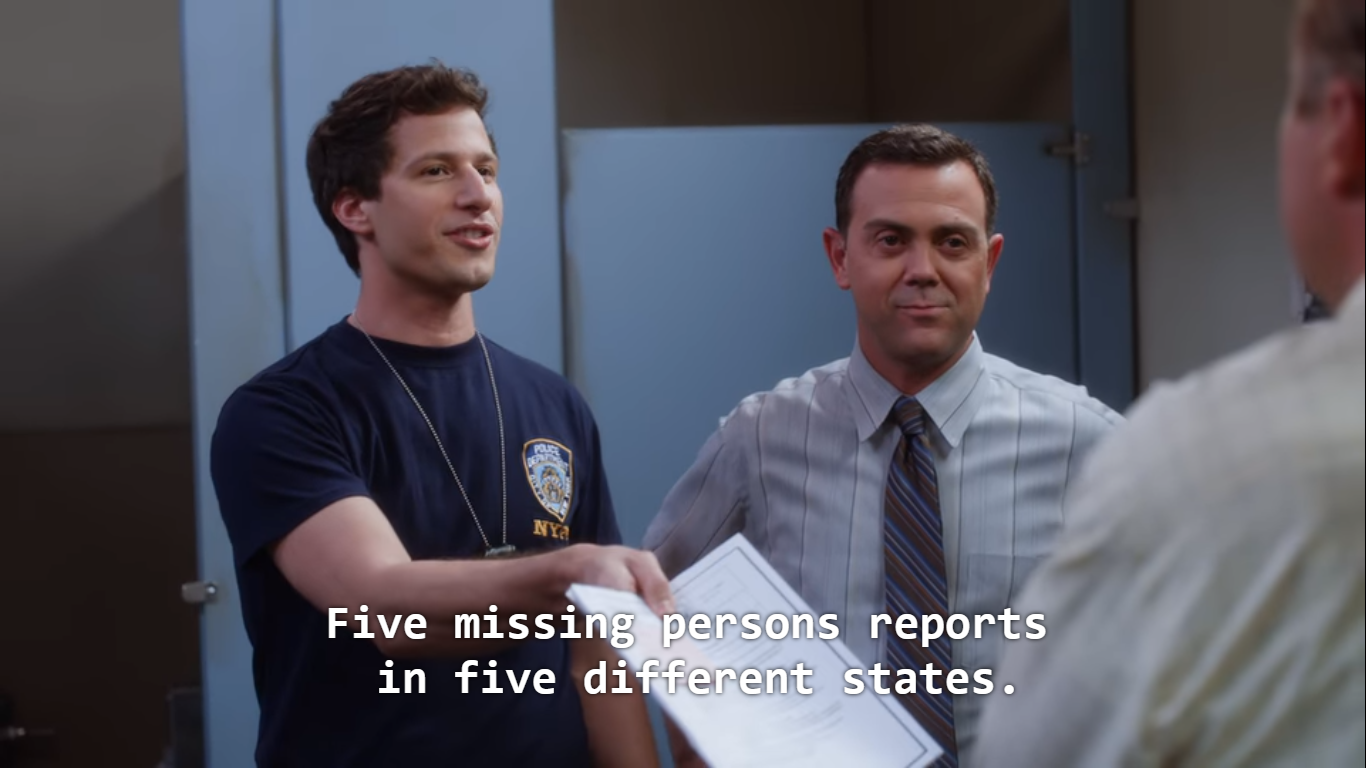 Five missing persons reports in five different states.